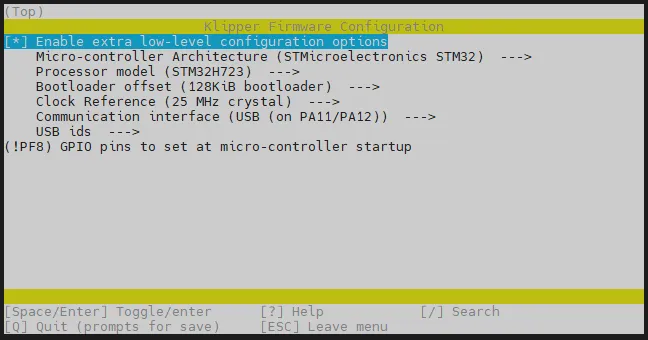 GPIO pins to set at micro-controller startup添入!PF8即可 - 请注意填入的