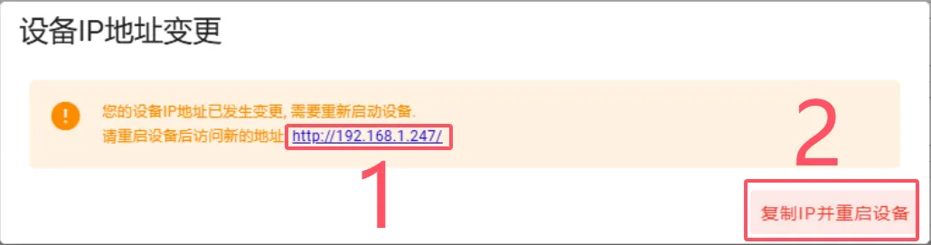 • 连接WiFi后会提示AirClick的连接WiFi后的IP地址,点击下方蓝色框即可重启设备