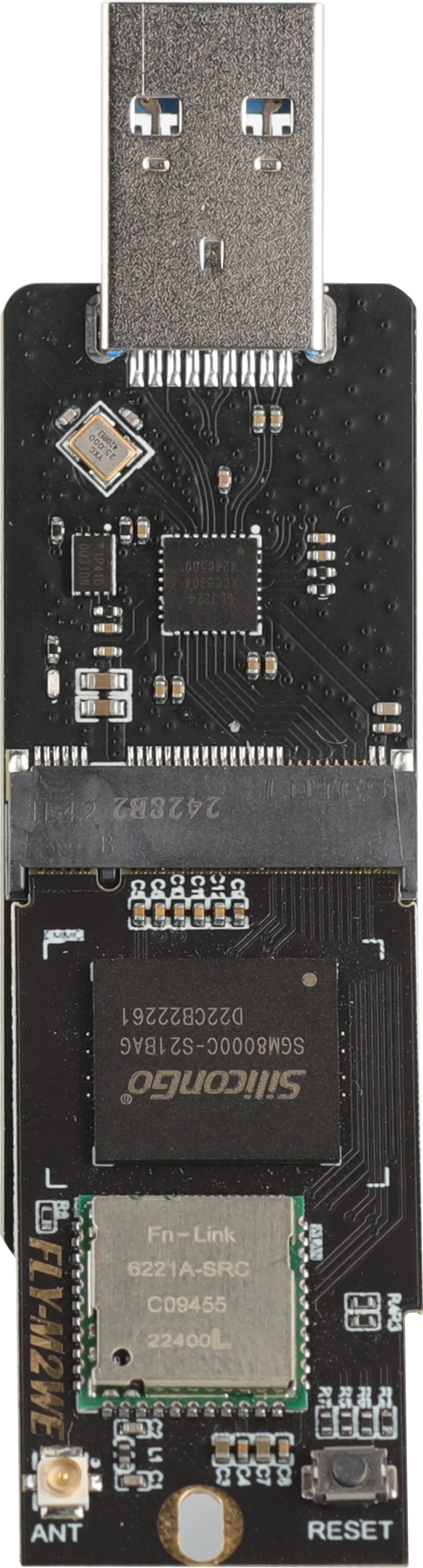 - 安装好M2WE,并且按着BOOT键并且将双头USB接入电脑