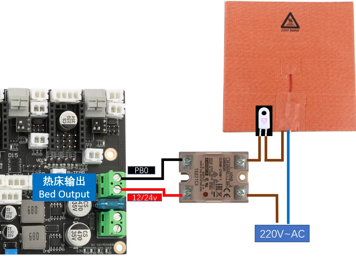 交流热床: 固态继电器在接线时,请注意输入和输出别接错了。