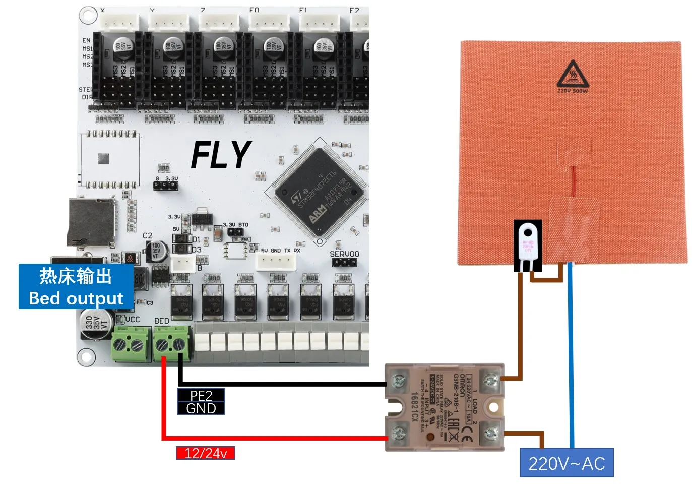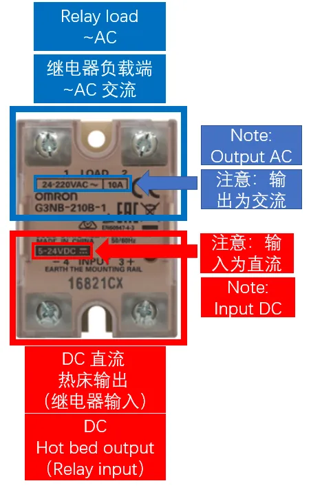 交流热床: 固态继电器在接线时,请注意输入和输出别接错了。