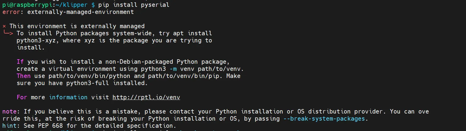 =后面没有空格。请将<你的主板ID>替换为上一步查询到的IDcd ~/klipper/ && make flash FLASH_DEVICE=<你的主板ID>