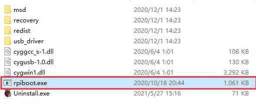- 以安装驱动程序和启动工具。安装成功之后在安装目录下有一个rpiboot.exe的应用