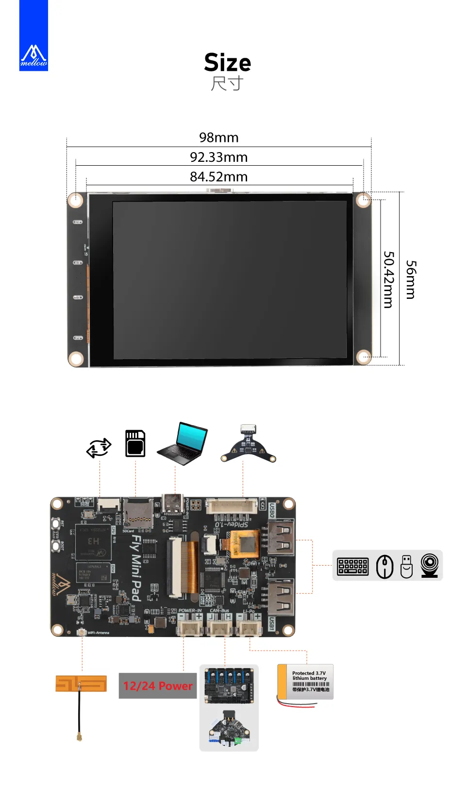 - WIFI : 板载2.4G WiFi
