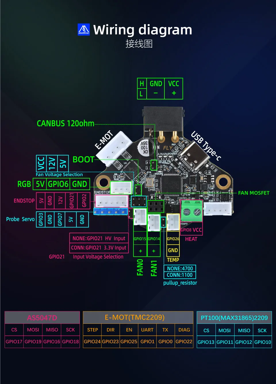 工具板类FLY-SHT36系列FLY-SHT36-LIS3DH主板接线SHT36 LIS3DH 提示赠送的蓝色散热片,请粘贴到驱动上!!! 主板参考接线 注意事项由于图片分辨率太高,在网页上浏览无法看清,请将鼠标光标放在接线图上方,单击右键,选择图片另存为 ,将图片保存到桌面再查看!!!