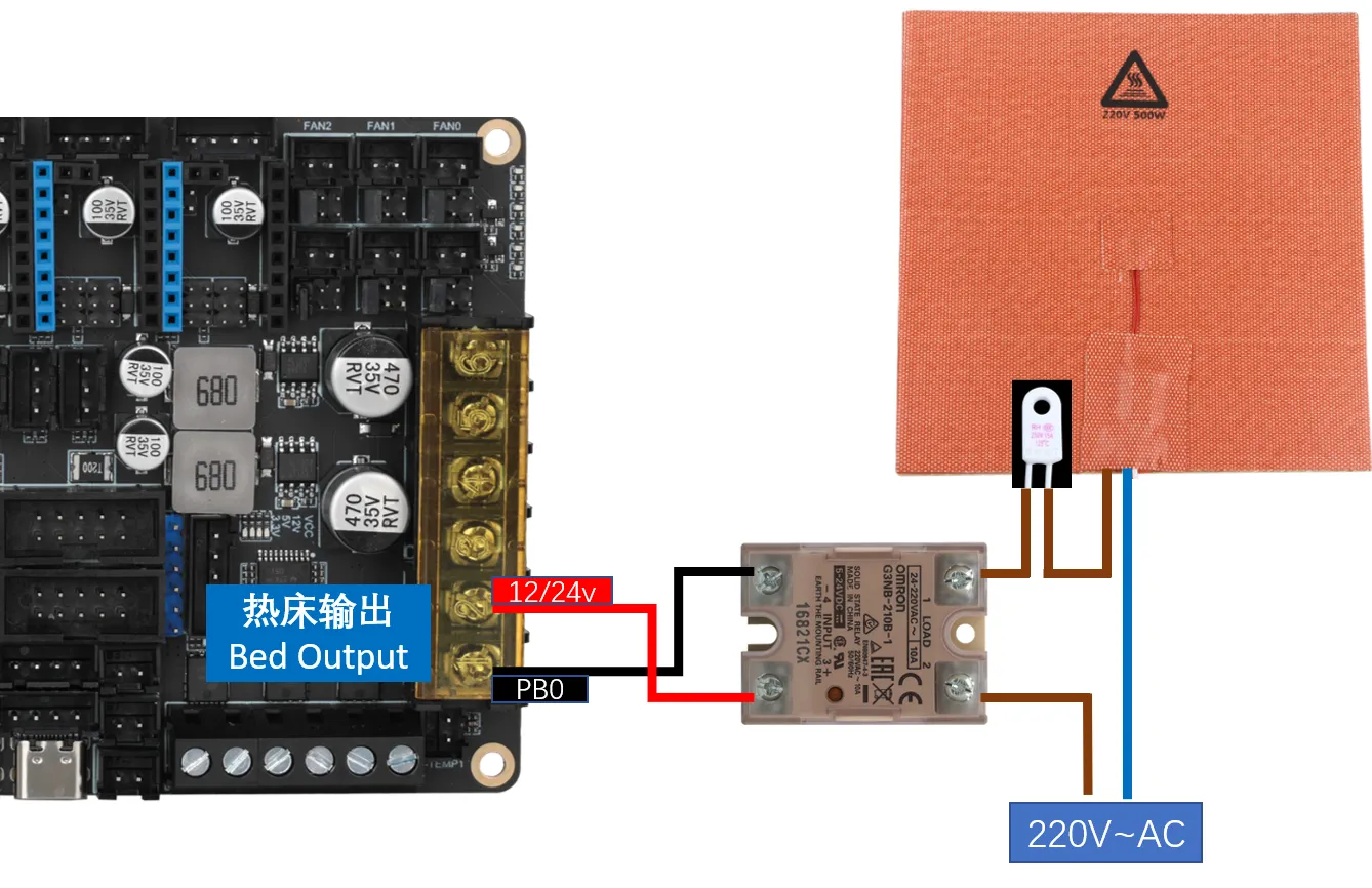 • AC Bed: When wiring the solid-state relay, make sure not to connect the input and output incorrectly.