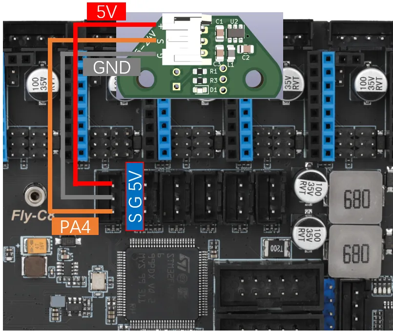 Voron Tap is not recommended to be connected to 24V, as some versions may burn out the Tap sensor when using 24V. This is not a problem with the Fly product, but a design flaw of Voron Tap. Please be aware!!
