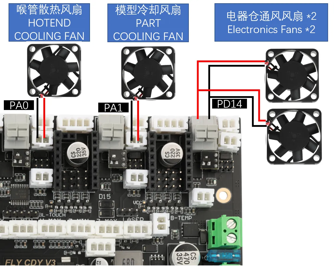warningVoron Tap is not recommended to connect 24V, as some versions using 24V have a high probability of burning out the Tap sensor. This is not a problem with the Fly product but a design flaw in Voron Tap. Please be aware!!!