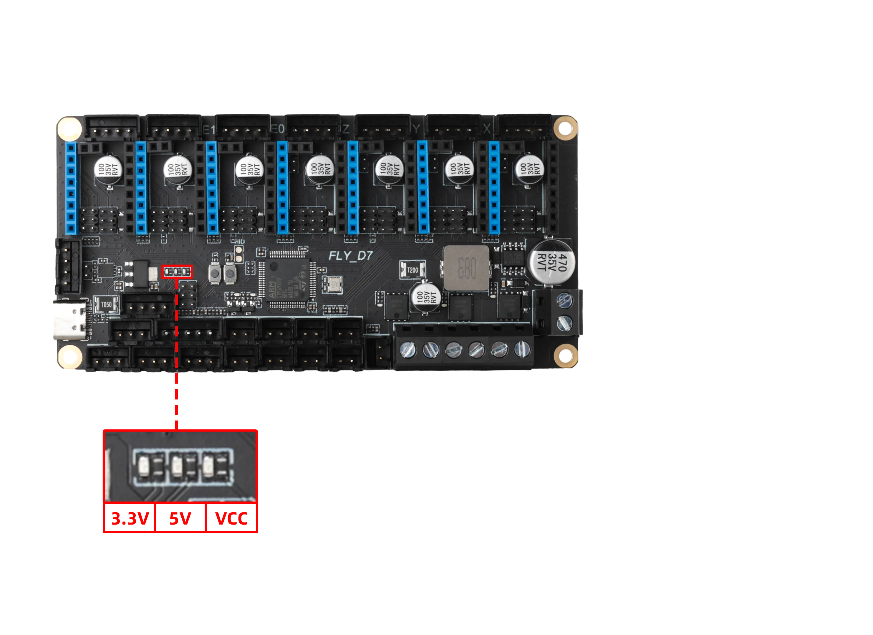 • If one of the lights 3.3V or 5V is blinking, it also indicates a short circuit, and you need to contact customer service.