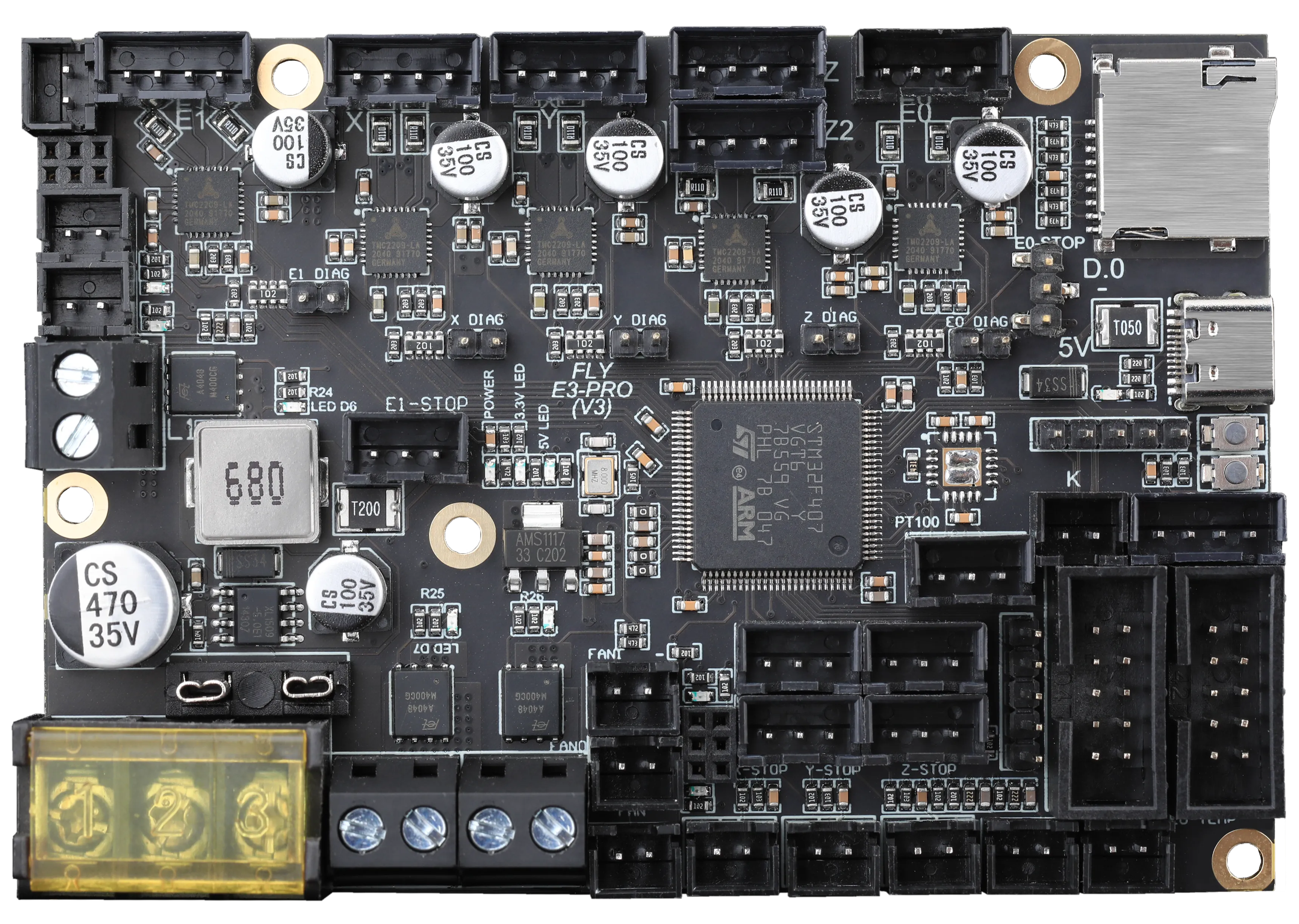- Display: Serial touchscreen, mini12864 LCD, 12864 LCD, 2004 LCD, FLY 4.3/7.0 V1