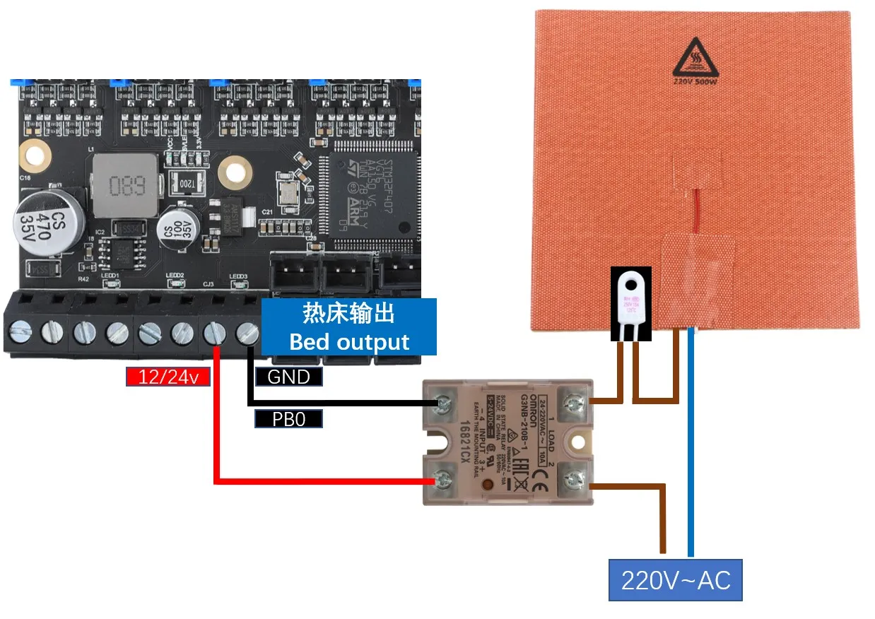 AC Bed: When wiring the solid-state relay, please pay attention to not reversing the input and output.