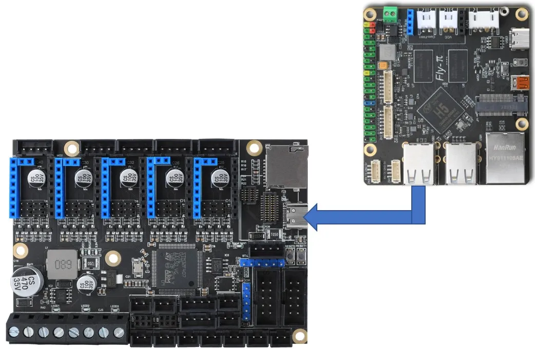 The motherboard connects to the host's USB port via a Type-C interface, or it can connect to the host through a serial port. Only the former is described here.