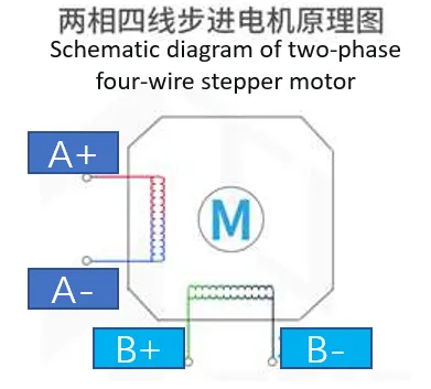 In a 3D printer, the most commonly used is the bipolar four-wire stepper motor, and its principle is shown in the figure below. There are two methods to identify the phase sequence of the stepper motor: