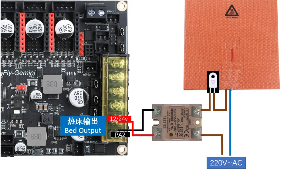 AC Bed: When wiring the solid-state relay, make sure not to mix up the input and output.