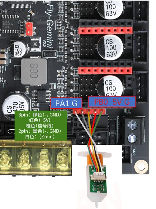 Klicky is a third-party leveling sensor that can be made at home with low cost and stable performance, making it highly recommended. The wiring method is as shown in the figure.