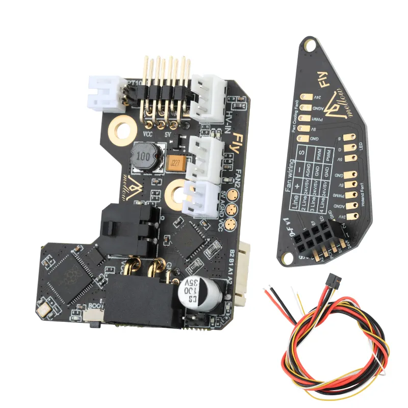 FLY SB2040 is a nozzle tool board launched by Guangzhou Magnesium Electronic Technology Co., Ltd. for the VORON Stealthburner print head. By using this tool board, it is possible to replace the complicated wiring between the mainboard and the print head with just four wires, optimizing the layout. SB2040 is suitable for 36 stepper motors and integrates a CAN transceiver, USB port, TMC2209 driver, ADXL345 accelerometer, two controllable fans, and other functionalities. This tool board is compatible with Klipper firmware.