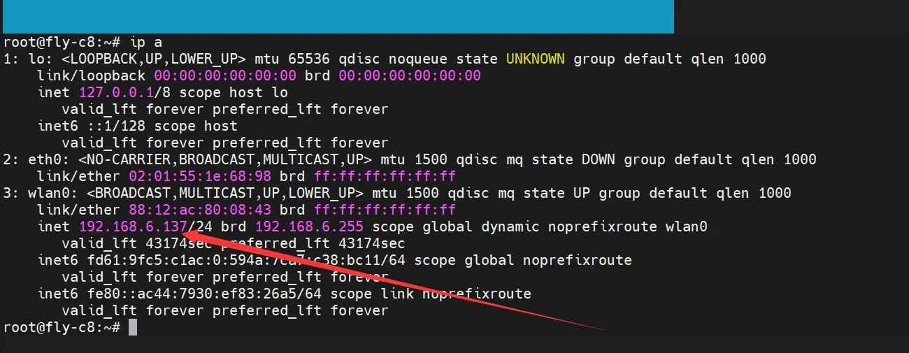- Une fois le WiFi connecté, sur le clavier, trouvez la touche Esc et appuyez plusieurs fois pour quitter l'interface actuelle, puis entrez ip a et appuyez sur Entrée
