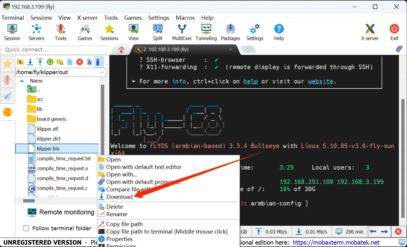 klipperinstallé Connectez-vous via SSH par réseau - Et connectez l'appareil à l'ordinateur hôte