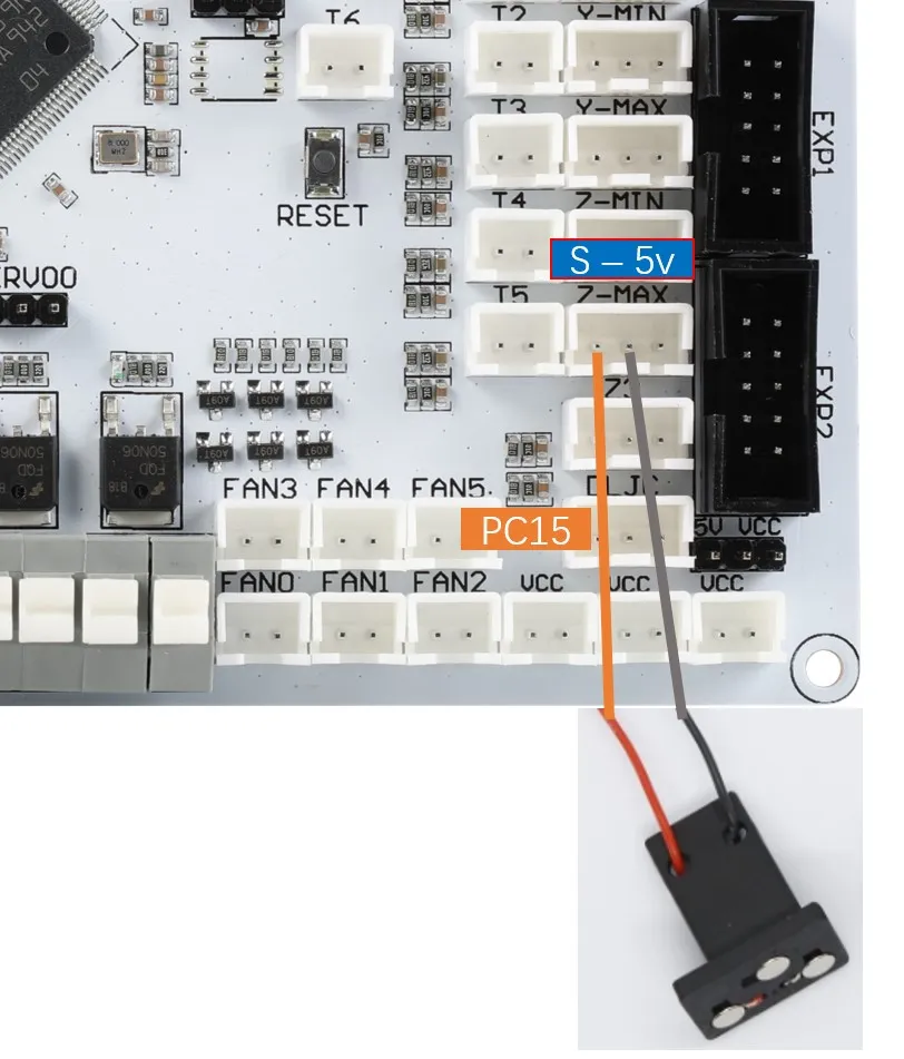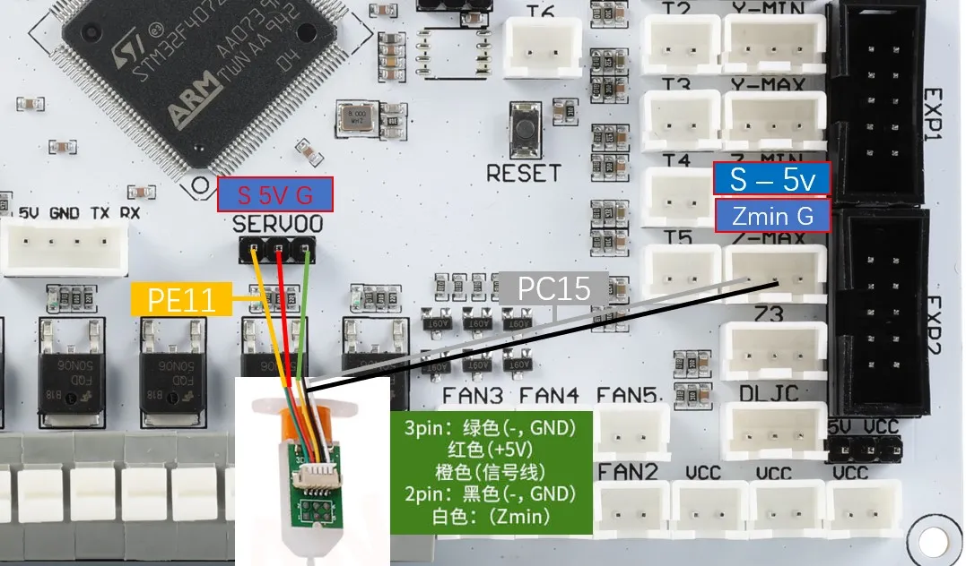 • Klicky est un capteur de nivellement tiers, qui peut être fabriqué à la maison à très bas coût, offrant stabilité et bon rapport qualité-prix, recommandé pour une utilisation. La méthode de connexion est illustrée comme suit.