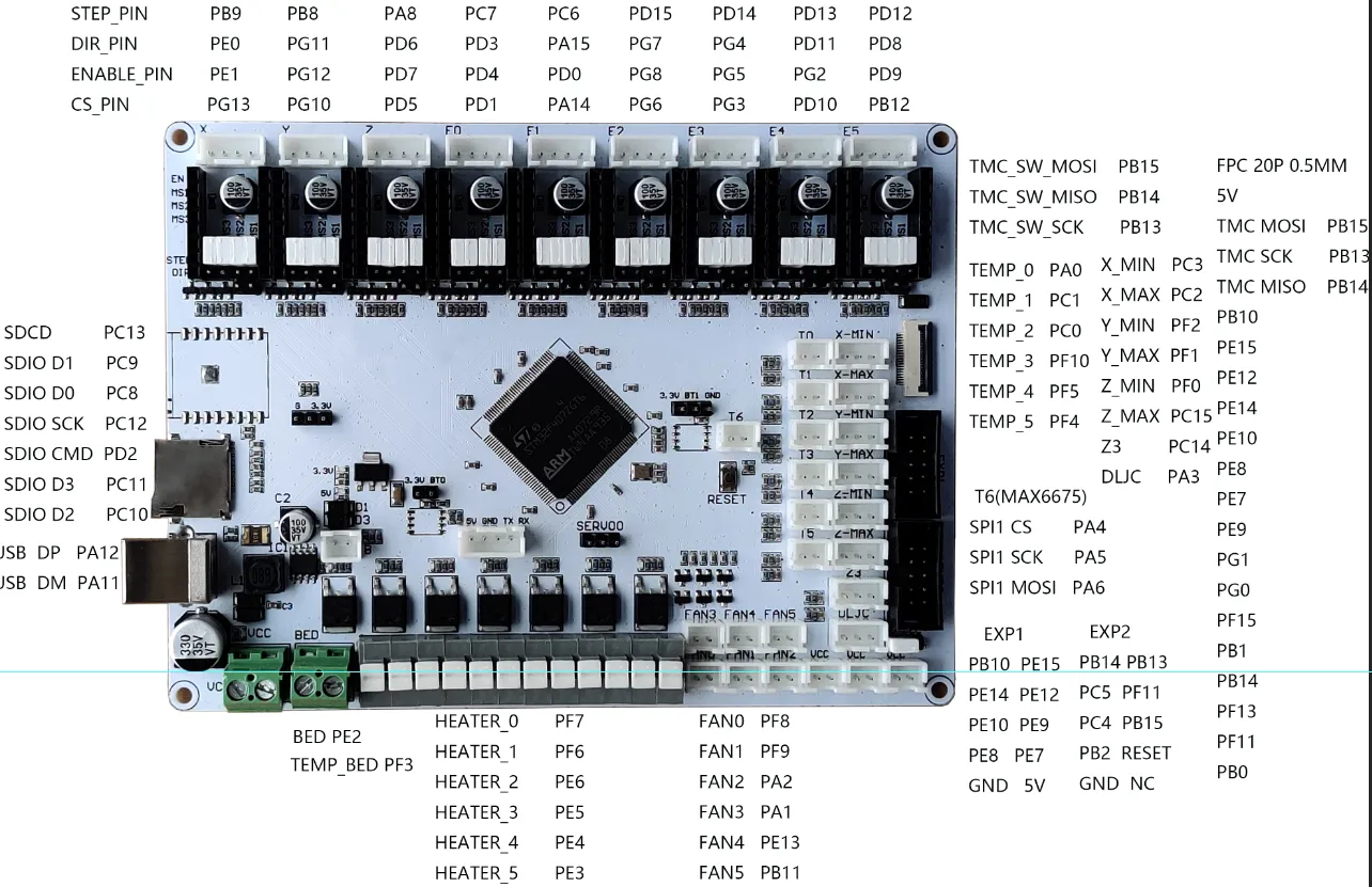 • Mode SPI. Les drivers les plus couramment utilisés dans ce mode sont : TMC5160, TMC2230, etc. Ces puces de driver communiquent en série synchrone SPI avec le contrôleur principal, permettant également de configurer la subdivision, le courant de fonctionnement, le mode silencieux, etc., via des modifications dans les fichiers de configuration.
