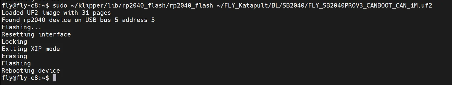sudo ~/klipper/lib/rp2040_flash/rp2040_flash ~/FLY_Katapult/BL/USBADXL/FLY_USBADXL.uf2