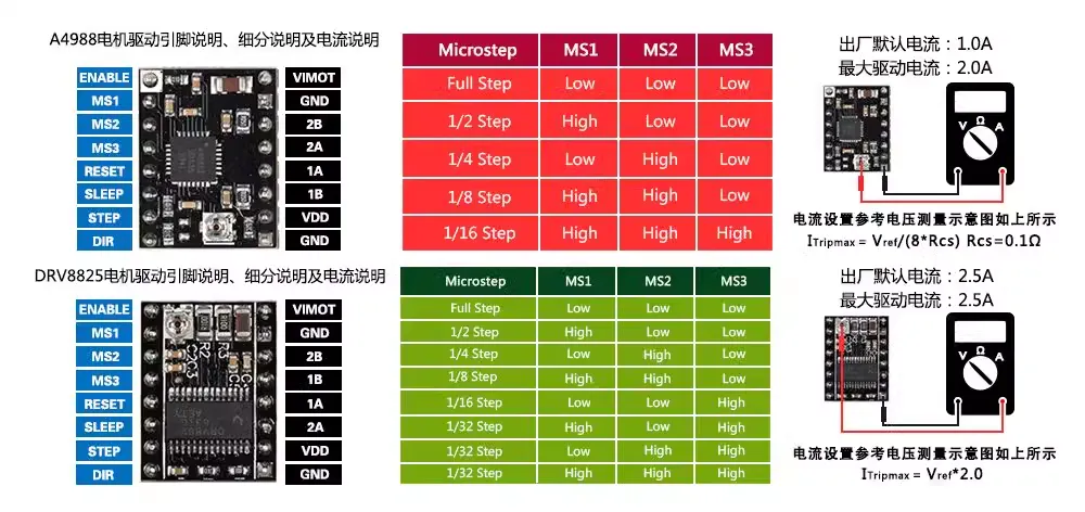 - Le A4988 utilise le mode normal de cavalier, il peut supporter 16 micro-pas après avoir connecté les quatre cavaliers