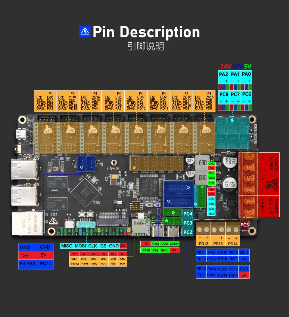 UARTモード。 このモードで最も一般的に使用されるドライバーは:TMC2208、TMC2209、TMC2226などです。この種のドライバーチップはマスターコントローラーとUART非同期シリアル通信を行い、設定ファイルを変更することでドライバーの細分、動作電流、静音モードなどを設定できます。