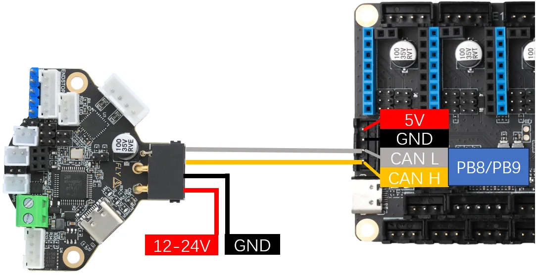 - ツールボードの電源線はCANポートに接続するのではなく、12V-24Vの電源線に接続する必要があります