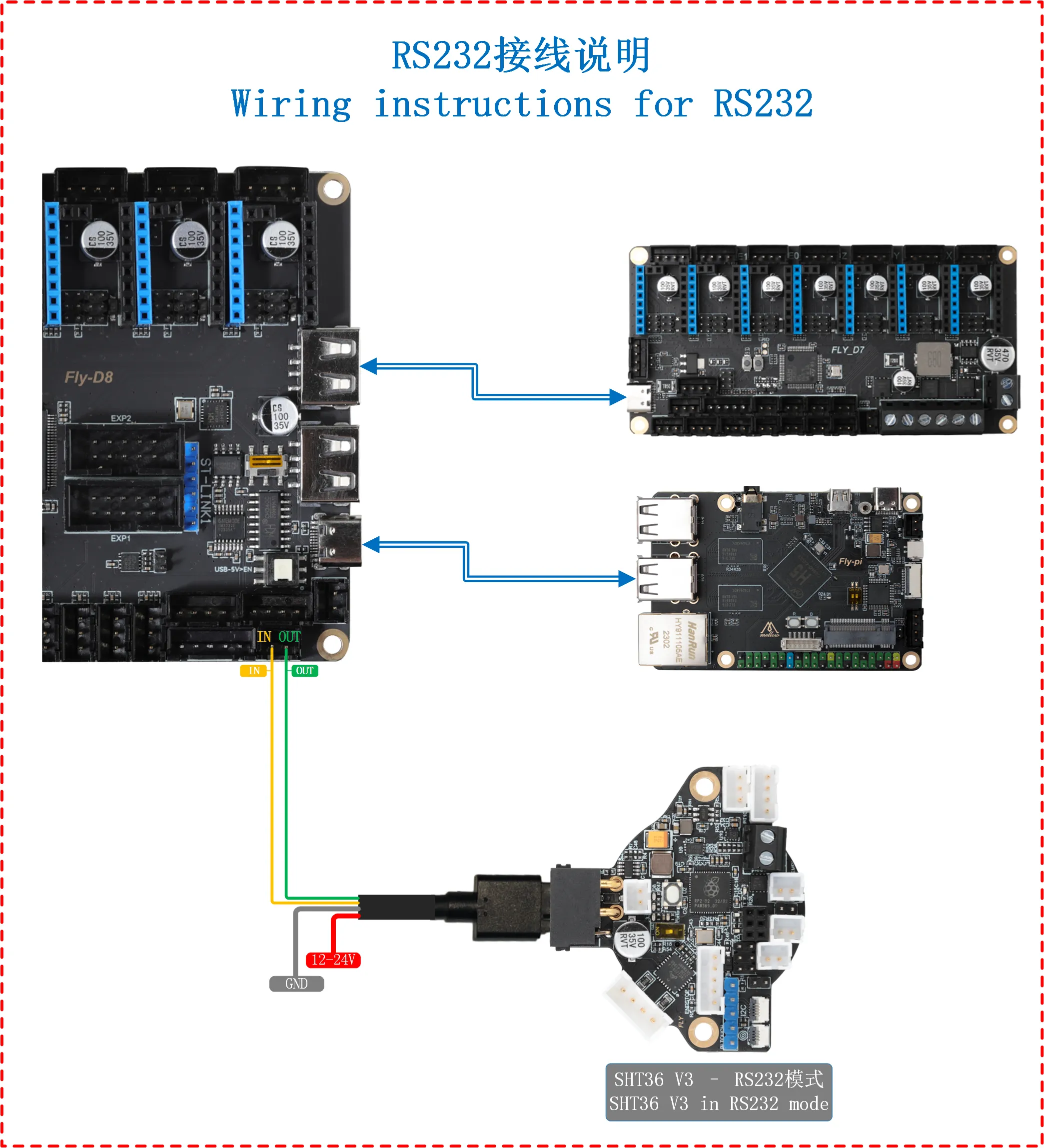 • ツールボードの電源線はRS232信号線に接続するのではなく、12V-24Vの電源線に接続されていることに注意してください。