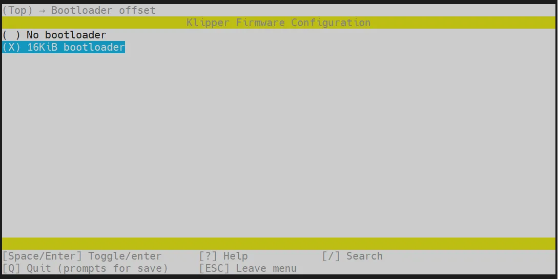 • Bootloader offsetを選択し、16KiB bootloaderを選びます。