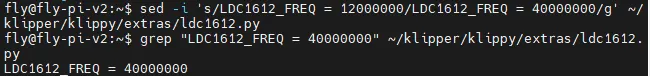 sed -i 's/LDC1612_FREQ = 12000000/LDC1612_FREQ = 40000000/g' ~/klipper/klippy/extras/ldc1612.py