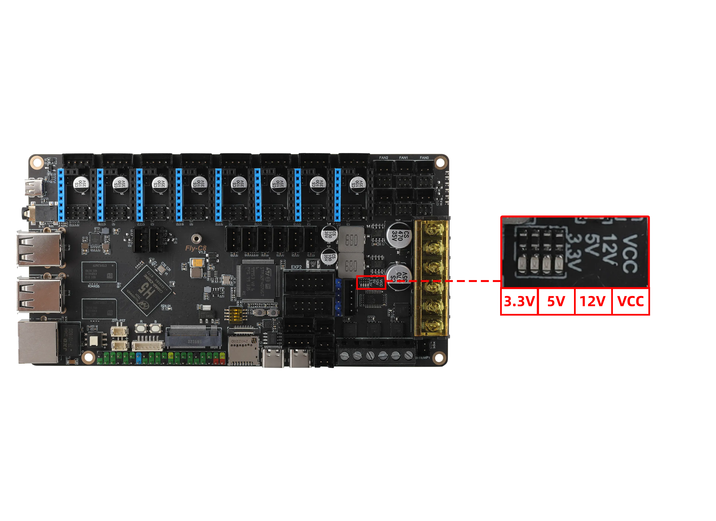 - 연결 순서에 주의하십시오. 삼선 리미트는 5V, GND, S 세 가지를 주의해서 연결해야 합니다. 잘못 연결하면 메인보드가 손상될 수 있습니다.