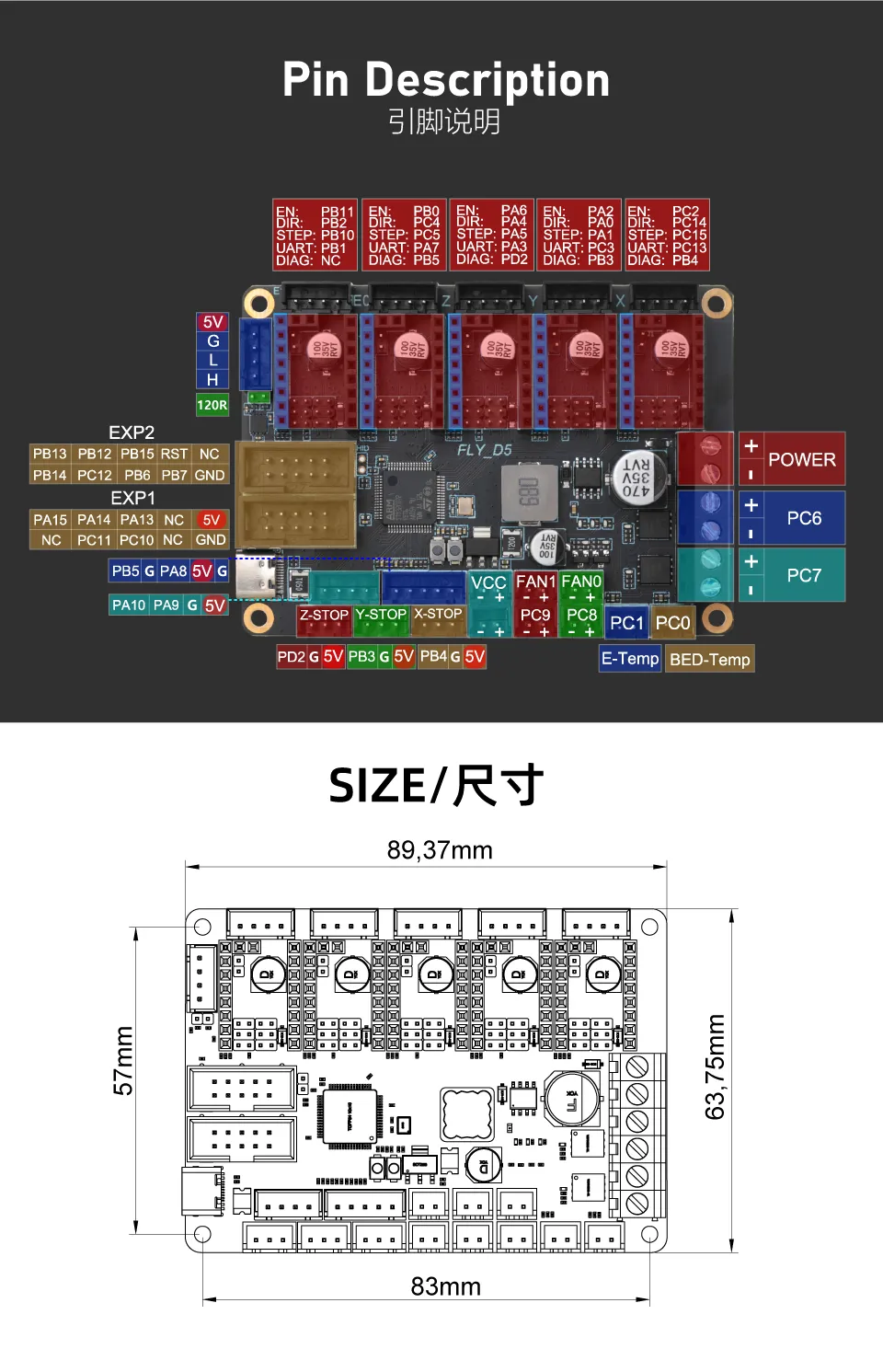 • 주의!!! 드라이버 모듈을 설치할 때는 반드시 삽입 방향이 올바른지 확인하십시오. 즉, EN 핀이 왼쪽 상단에 위치해야 합니다. 그렇지 않으면 드라이버와 심지어 메인보드까지 손상될 수 있습니다!!! 드라이버에 방열판을 붙여주세요!!!