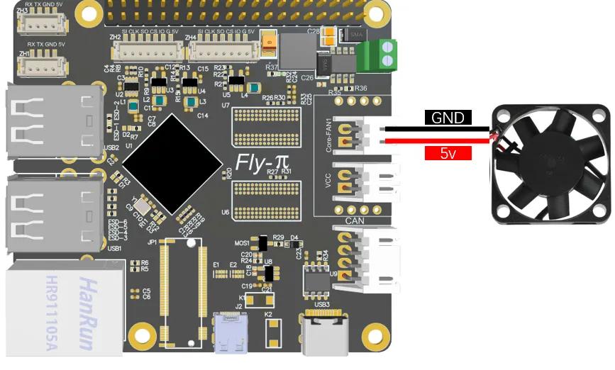 Pi에 온보드 5V 제어 인터페이스가 하나 있어, 메인 컨트롤러의 열을 식히는 데 사용됩니다. 연결 방법은 아래와 같습니다.