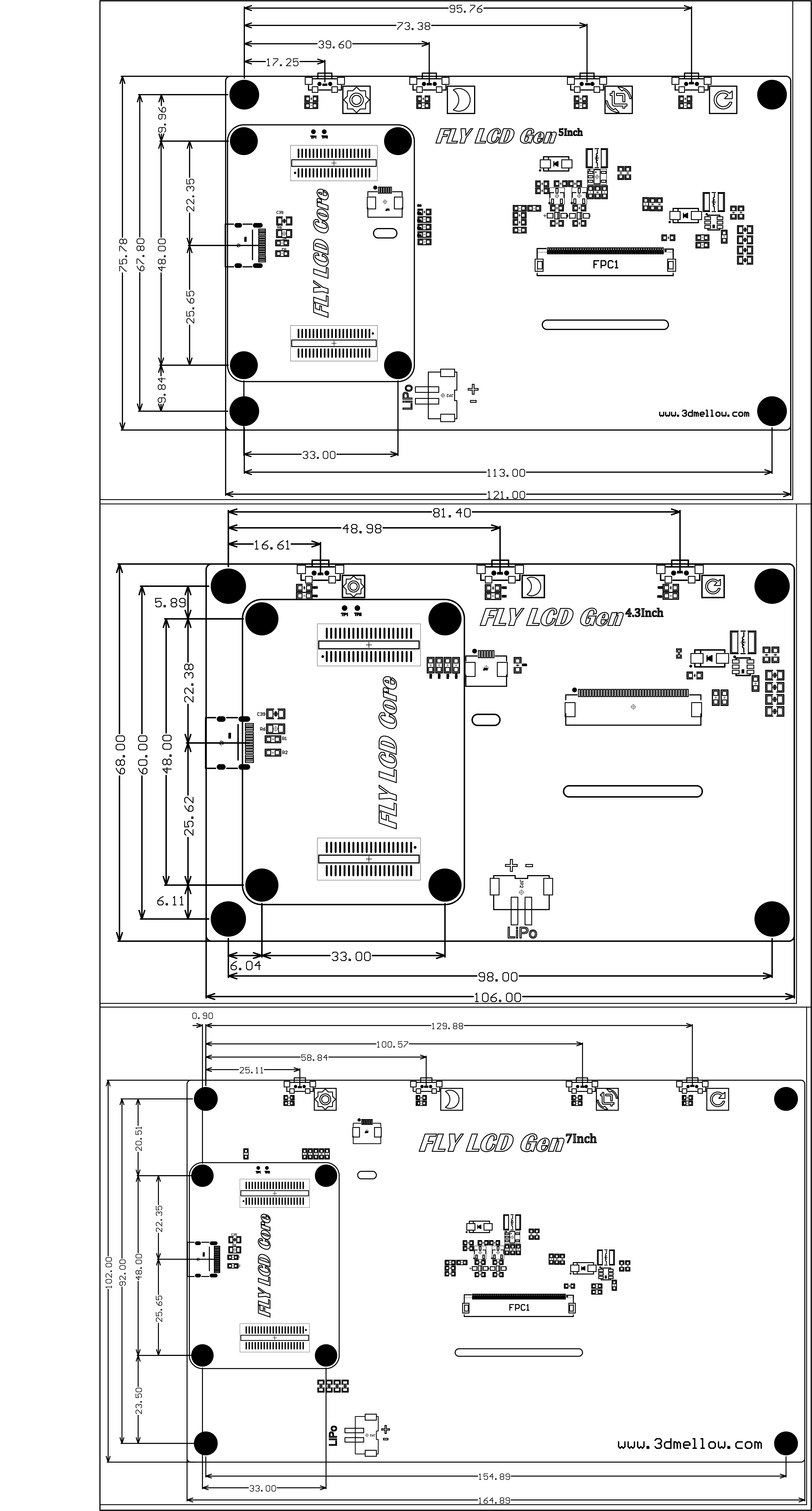 디스플레이 클래스FLY-LCD 시리즈소개이 페이지에서소개 분리형 디자인, 다양한 코어 보드 DSI와 HDMI 지원 다양한 크기, 4.3인치, 4인치, 7인치 고해상도, 모든 디테일을 놓치지 않습니다 10단계 밝기 조절 지원 180° 화면 회전 지원 주의사항7인치 화면은 HDMI 코어 보드를 선택할 수 없으며, DSI 코어 보드는 정상적으로 제어합니다 제품 크기