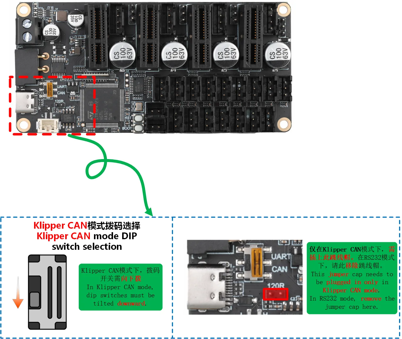 - 네 번째: ID가 표시되지 않음, 일반적으로 Klipper가 점유 중이거나 상위기기 CAN0 속도가 잘못되었거나 연결이 비정상적인 경우입니다.