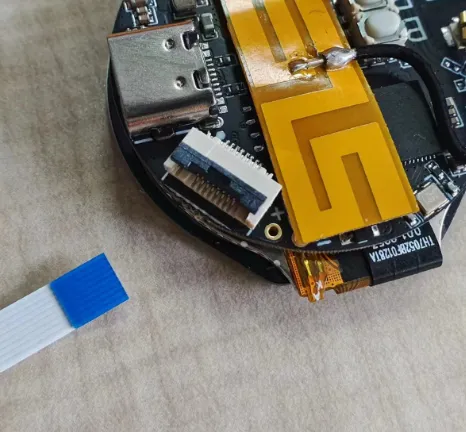 - Установите FPC-кабель в соответствии с изображением выше (не перепутайте направление FPC-кабеля, синяя сторона должна быть вверху)