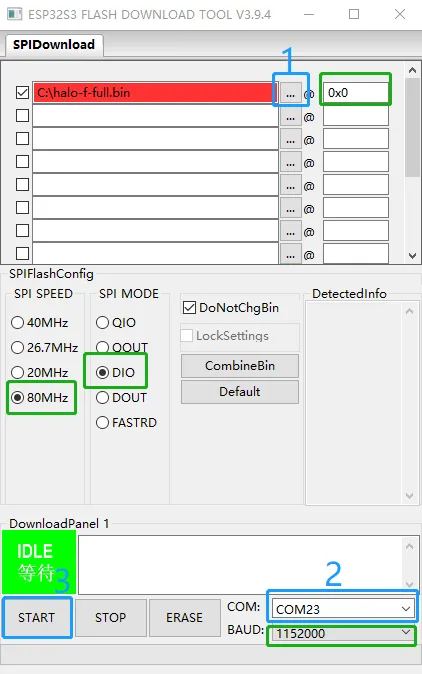 flash_download_tool_3.9.4.exe, обратите внимание: после открытия инструмента для записи сначала появится окно CMD, затем откроется интерфейс инструмента. Не закрывайте окно CMD - В инструменте записи выберите