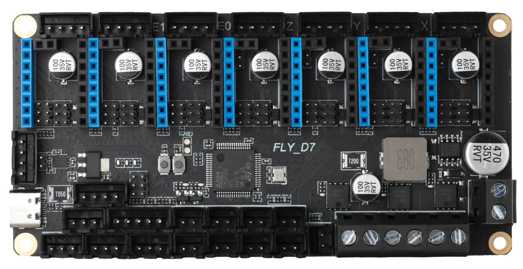 Fly-D7 - это высокопроизводительная плата для 3D-принтера, выпущенная командой разработчиков Fly3D из Guangzhou Maile Technology Co., Ltd, поддерживающая до 7 шаговых двигателей.