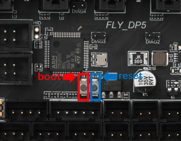 Слева кнопка BOOT, справа кнопка RESET
