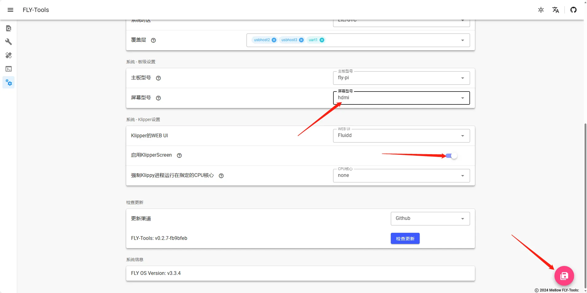 - Необходимо в FLY TOOLS настроить экран и включить KS, как показано ниже