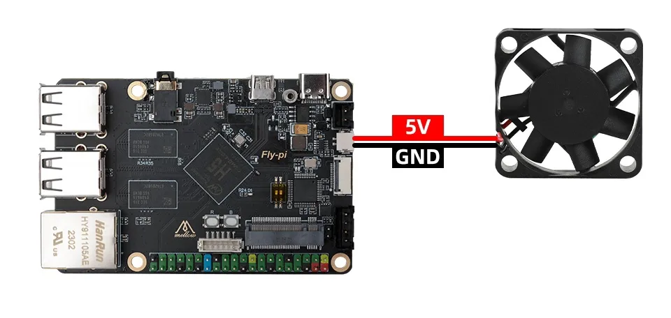 Плата Pi-V2 оснащена контролируемым интерфейсом 5V для охлаждения основного контроллера, способ подключения показан на следующем изображении