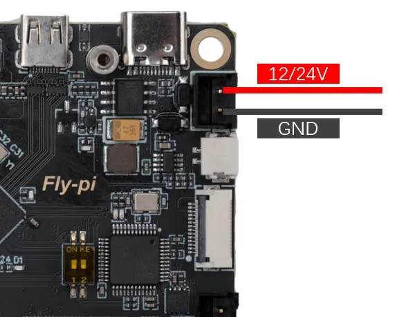 Высший компьютерный классФЛАЙ-ПИ-В2Питание верхнего уровняСодержание этой страницыПитание верхнего уровня подсказыватьУ FLY-Pi-V2 есть два способа питания Питание от источника 12-24В, схема подключения показана на рисунке ниже Питание через интерфейс TypeC